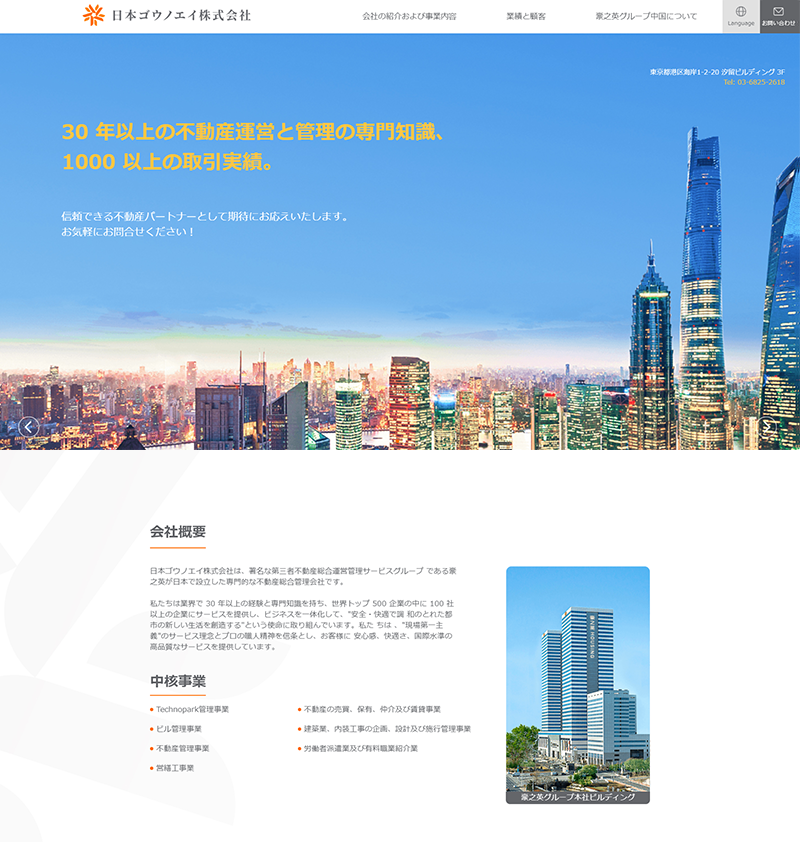 豪之英集團是大連思祿信息多年合作客戶,此次日文站是為日本分公司拓展業務使用,設計高標準,技術高起點。在此預祝豪之英集團日本分公司大展宏圖。
